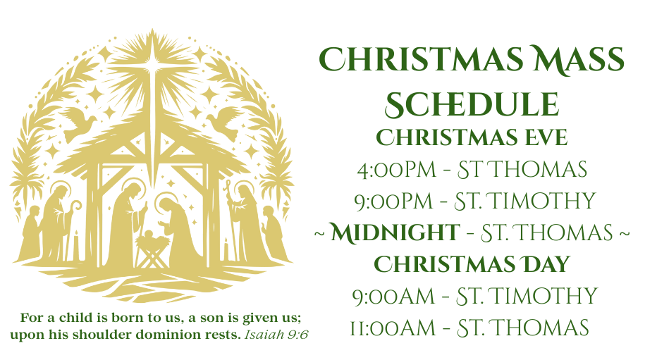 In the event of delays or closings, Weekday Morning Mass at St. Timothy will be celebrated at St. Thomas. Check WFSB for updates.
